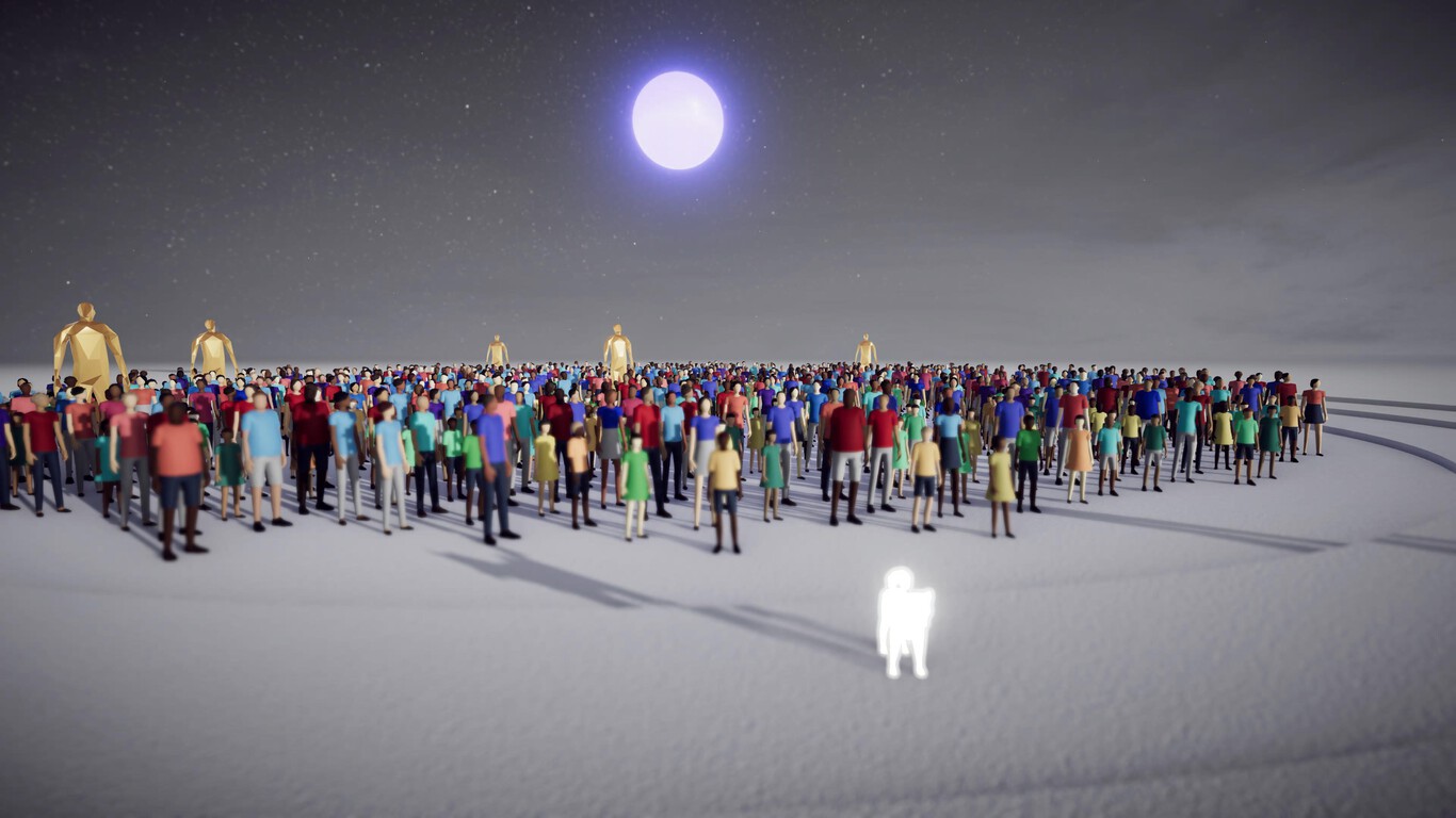 Lo atractivo de Humanity radica en su simplicidad visual y sonora. Los escenarios son bloques abstractos en tonos pastel que contrastan con el enjambre de siluetas humanas, creando un espectáculo hipnótico. El sonido, con melodías repetitivas pero envolventes, acompaña el ritmo de los pasos y comandos, convirtiendo cada solución en una sinfonía personal. Si juegas en realidad virtual, la inmersión sube de nivel: te sientes un titán observando hormigas humanas, lo que añade un matiz filosófico a la diversión.