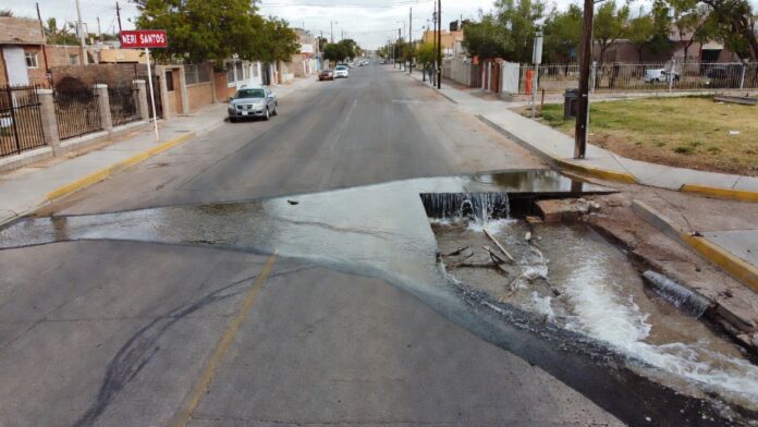 La fuga de agua en la calle Josué Neri Santos ha transformado una zona transitada en un área de riesgo. Peatones que caminan por la banqueta deben sortear charcos y corrientes de agua, mientras que los conductores enfrentan superficies resbaladizas que podrían derivar en accidentes vehiculares. Con las temperaturas bajas registradas en Chihuahua durante esta temporada, el agua estancada podría congelarse durante la noche, convirtiéndose en una capa de hielo invisible que incrementa el peligro para todos los usuarios de la vía pública.
