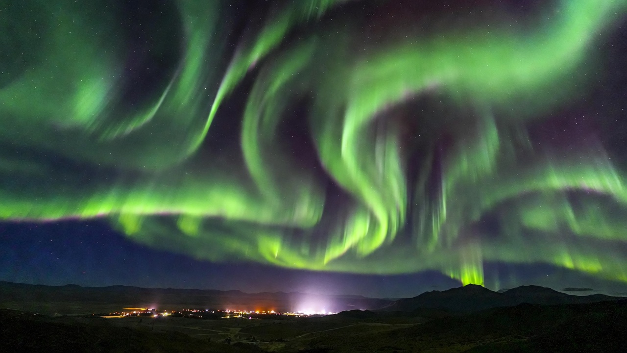 Dependiendo de la intensidad de la tormenta solar, las auroras boreales exhiben una paleta diversa. Tonos verdes dominan cuando el oxígeno se excita a altitudes medias, mientras que rojos aparecen en alturas superiores. En casos extremos, como esta tormenta solar S4, azules y violetas emergen de la ionización del nitrógeno. Estas variaciones hacen que cada tormenta solar produzca auroras boreales con patrones impredecibles, atrayendo a fotógrafos y científicos por igual.