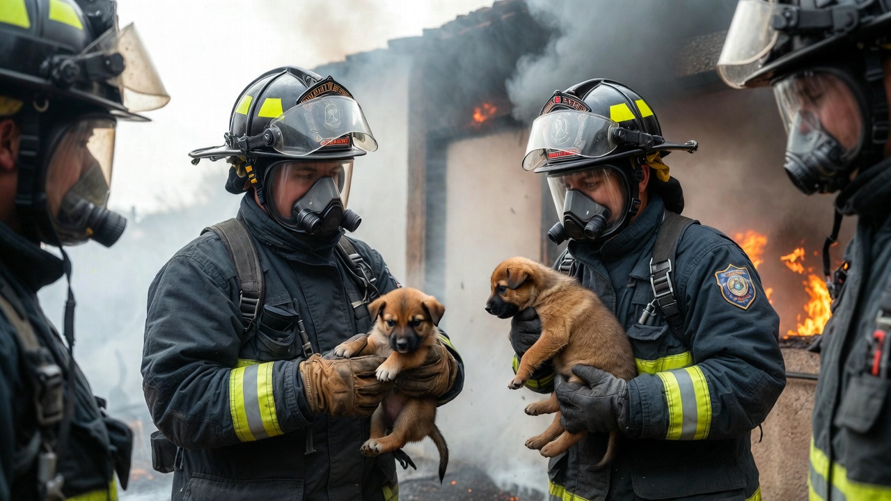 Rescate de cachorros en incendio por bomberos heroicos
