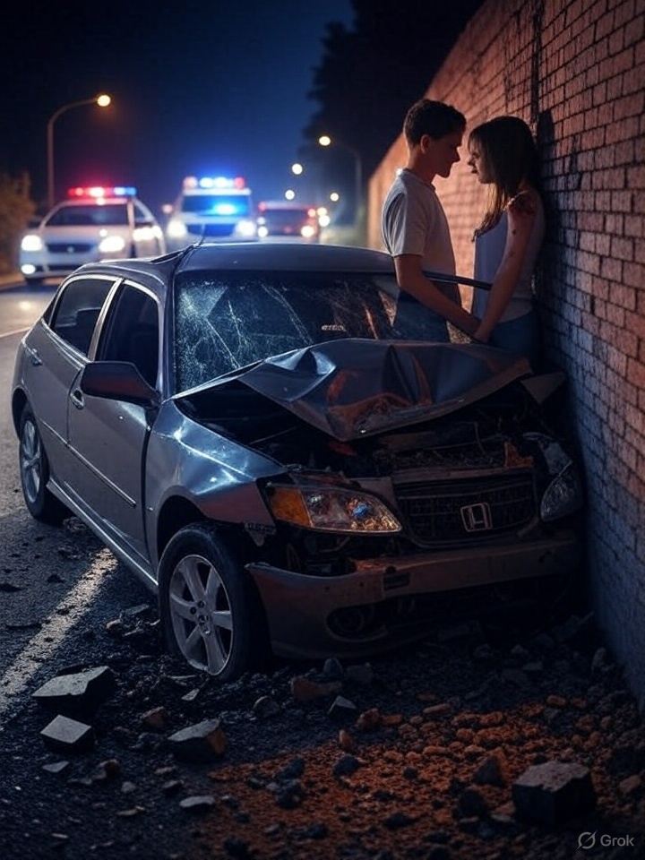 El impacto fue devastador, dejando a ambos ocupantes, una pareja de aproximadamente 25 años, en estado crítico. La barda de ladrillos quedó parcialmente destruida tras el choque.