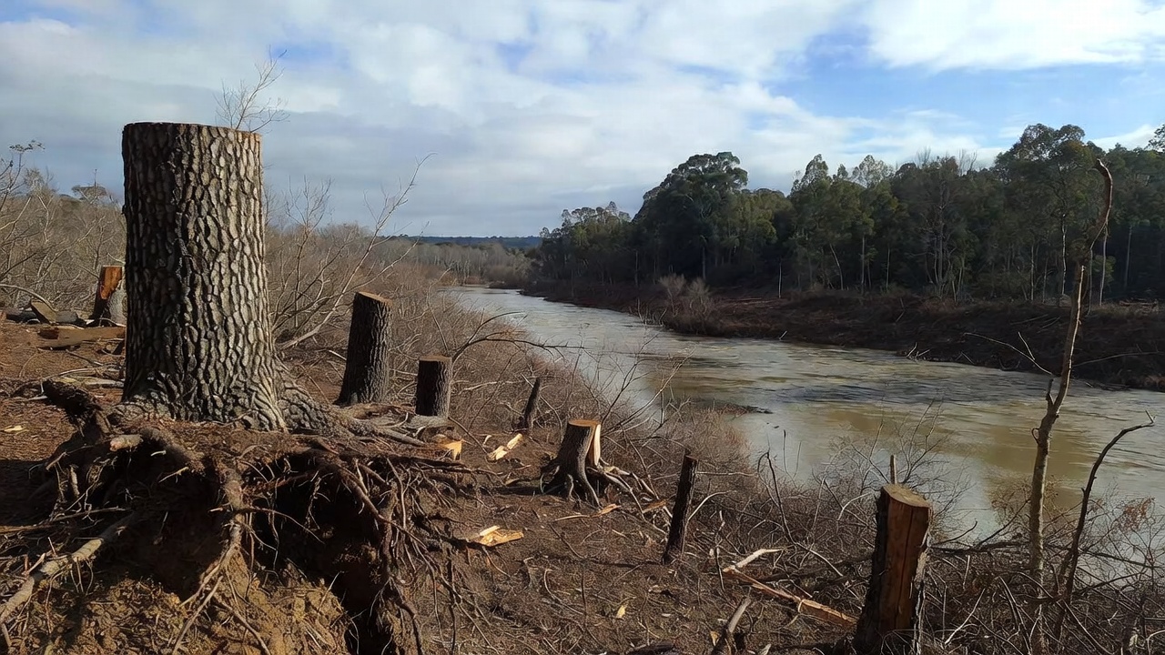 Detalles de la Tala de Árboles en el Río Principal
