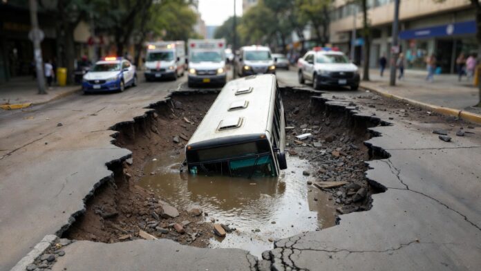 Socavón en León ha generado un caos total en el bulevar Hermanos Aldama, donde una fuga masiva de agua ha provocado un hundimiento repentino que ha atrapado a un camión de pasajeros, dejando a decenas de personas en peligro inminente.