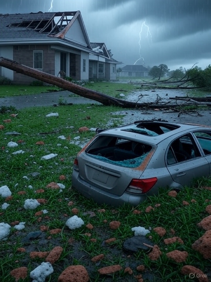 Lluvia, granizo y vientos arrasan el norte de Nuevo León: árboles caídos y casas dañadas