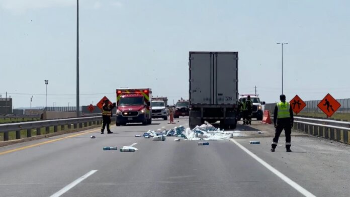 El vuelca tráiler involucró a una unidad Kenworth color blanco con caja seca y placas de circulación 61-BD-1P, que terminó sobre uno de sus costados tras perder el control, posiblemente por exceso de velocidad o fallas mecánicas que aún se investigan. La mercancía, compuesta por paquetes de leche, salió proyectada fuera de la caja, esparciéndose en varios metros de la carretera y complicando la circulación nocturna. Este tipo de volcadura de camión no solo representa un desperdicio masivo de productos, sino un peligro latente para conductores y peatones que transitan por Guadalupe Nuevo León, una zona ya conocida por su congestión vehicular.